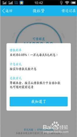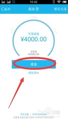 5、这里显示出本人所能借贷的额度了。就4000块而已,也不多,但是一定要记得,就像【回享计划】一定要写原创经验一样,这个借贷也是一样要记得用后要还款哦,珍惜自己的信用!直接按下【借款】然后根据提示输入你的开户银行之类的资料了。15分钟左右到账。听说最高借款额度是20万哦。