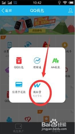 4、到了这里,大家看图上的红圈中的【微粒贷】如果能显示出这个,那么恭喜你,你可以在QQ借贷了,如果没有,那么抱歉只能能这个系统完全上线了才能使用了。