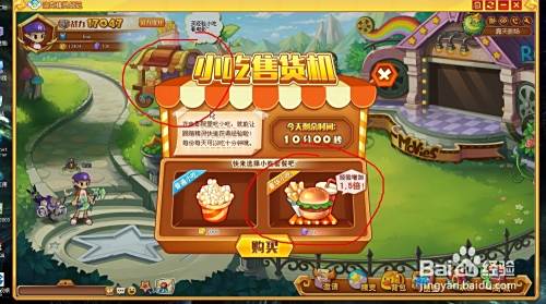 再点击小吃售货机,进入购买页面,选择你需要的零食,点击确定