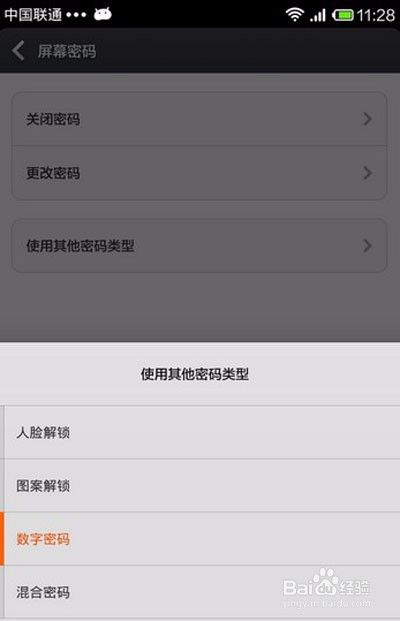 这个时候可以选择密码的类型,其中包括数字,脸面等。