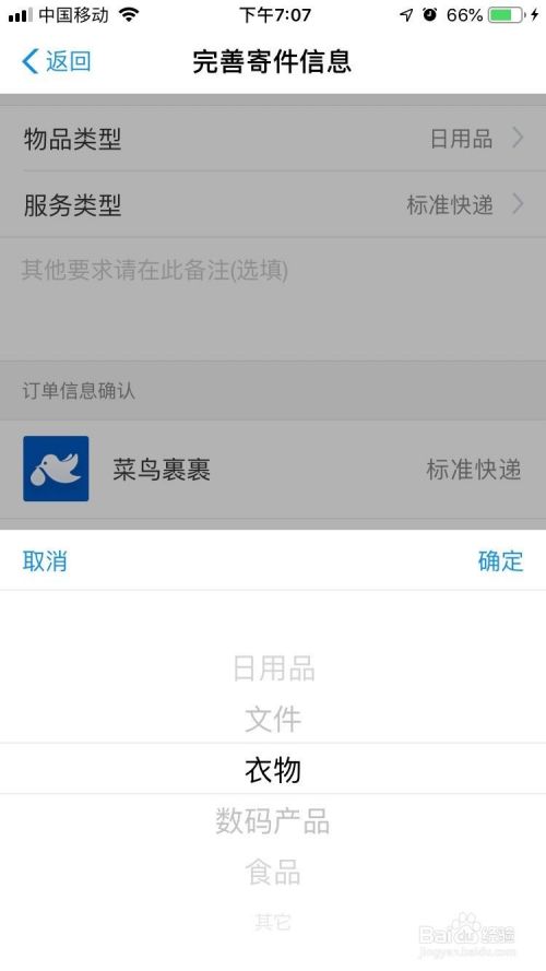 紧接着,完善寄件信息,有寄件的类别,重量,取件时间等等。