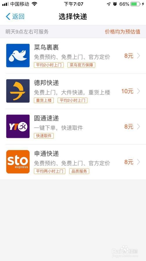 接着,选择快递,这里根据自己的需要选择寄件的快递方式。