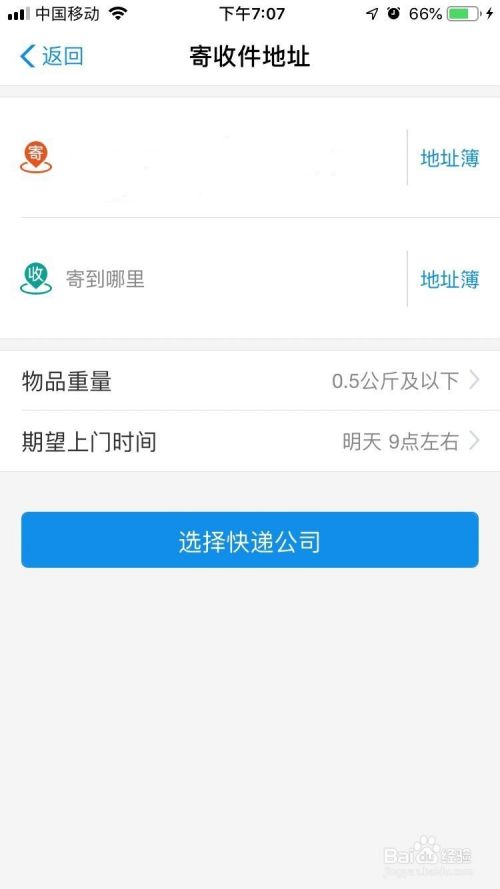 进入后会要求你输出寄出地址和收件地址,如果之前已寄过快递,或者存在地址信息,则可以在地址蒲里查找。