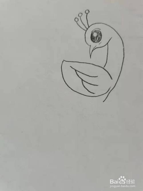 首先,我们画孔雀的头部轮廓和嘴巴。