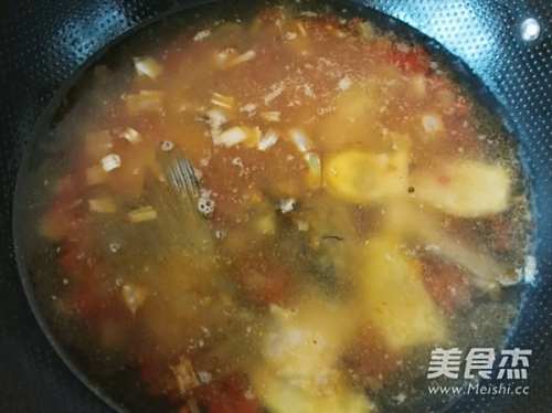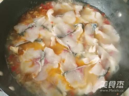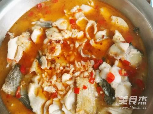 20逐片下入鱼片,待水再次烧开马上关火,倒入有白菜叶垫底的大盆中。
