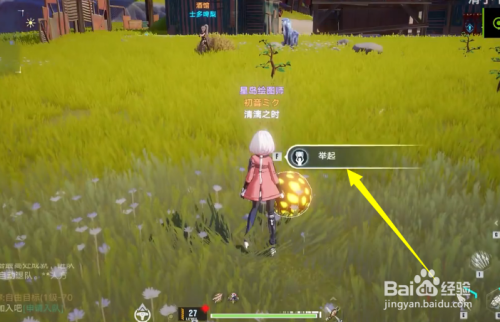 在这里可以看到一个金球,我们靠近点击举起;