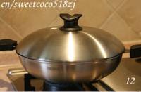 炒锅内倒入油,待热至油表出现细小波纹时,细丢一片葱进去,如果很快冒着泡浮起,即表面油温合适