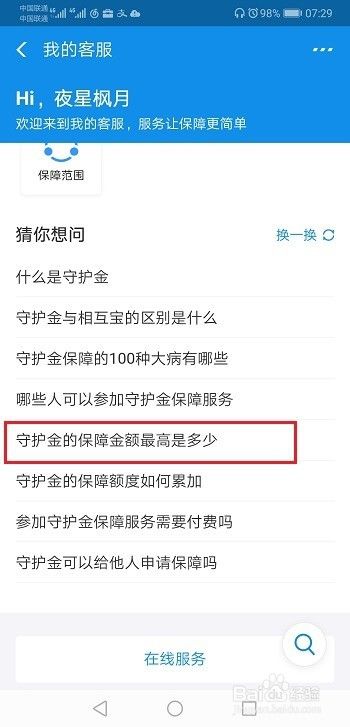 第四步进去之后,点击守护金的保障金额最高是多少,如下图所示: