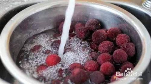 准备大约500g新鲜杨梅,放在盐水里浸泡大约10分钟,然后冲洗干净,晾干表面水分。
