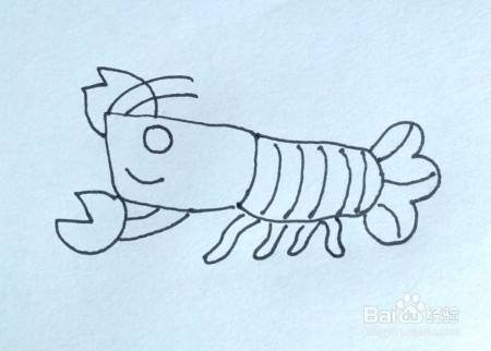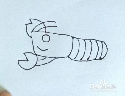 画小龙虾的眼睛、嘴巴和须,如图所示。