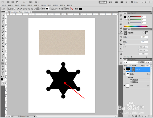 点击【自定义形状工具】,按图示设置好各个参数后,在作图区域绘制出一个异形图案(如图所示);