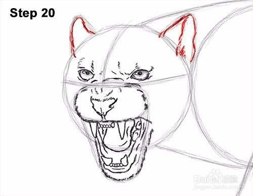 第20步:使黑豹的第一只耳朵在头顶左侧的三角形弧形变暗。现在将右侧的弧变暗以创建另一只耳朵。耳朵向后翻,所以在右侧耳朵中间划一条线,以便耳朵开放。