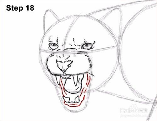 第18步:使用最初的U形线作为指导,在牙齿周围画出牙龈。只需画出几条与U形导轨平行的线,但它们靠近豹的牙齿。