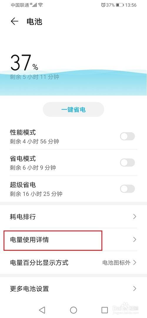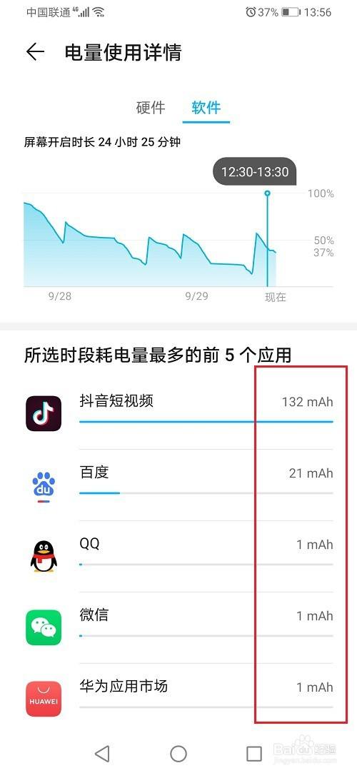 第五步进去之后,可以看到华为手机应用程序耗电详情,根据需要查看