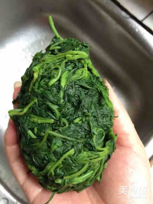3将焯好的艾叶沥干水分,放冷开水冲净,再沥干水分,反复操作几次,去掉艾叶本身的苦味。