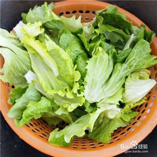 选择新鲜碧绿的生菜,一片一片地摘下来,放在清水里洗干净。