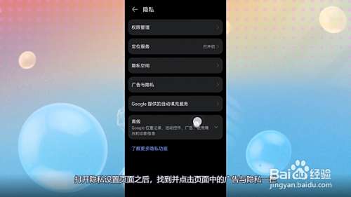 在华为隐私设置中选择广告与隐私选项,把页面里的限制广告跟踪这个功能开启,开启之后手机就会限制广告展示。