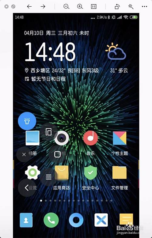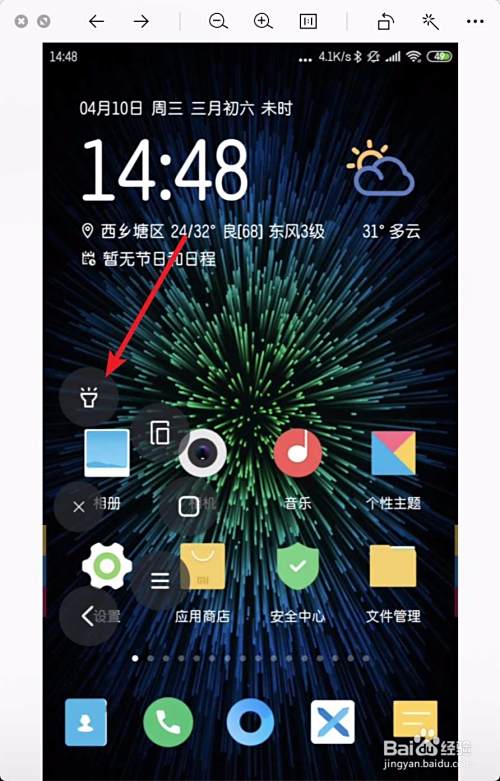 用的时候,点击桌面的圆弧,点击悬浮球上的功能。