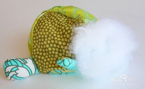 将小乌龟的头部和小尾巴缝制在一起,把主体部分塞上填充棉。