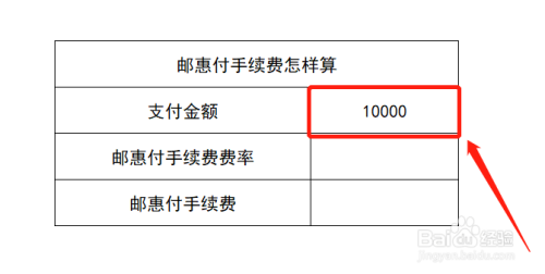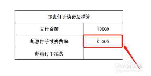 然后,在表格中的【邮惠付手续费费率】右边的单元格中输入0.3%。如下图所示: