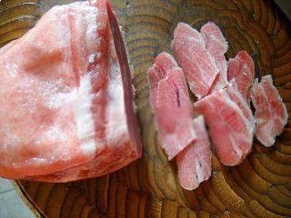 6.豆腐用水冲一会,切块;大蒜、生姜洗净切丝;香葱洗净切粒