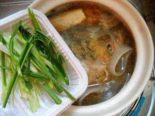 16.鱼头煮开,调好味。5分钟后,撒入大蒜丝即关火