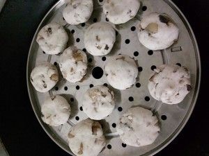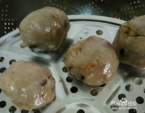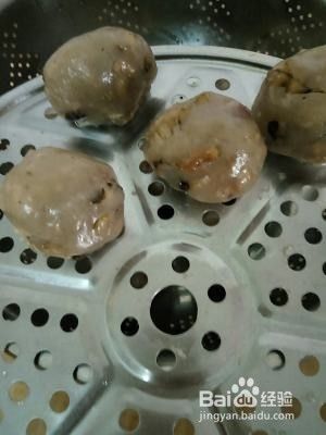 配料和粉团揉好后,揉成一个一个丸子。可以圆的,也可以压扁一点蒸的时候比较快熟。揉圆的团子冷水入锅中火蒸半小时。揉扁的蒸20分钟