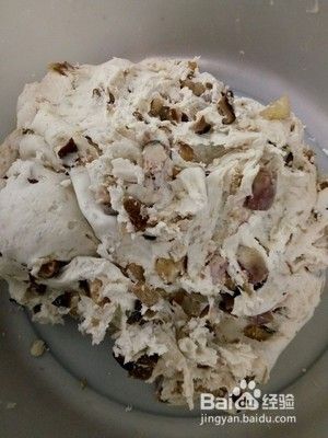 面团揉大概十分钟左右把炒好的配料揉到面团中
