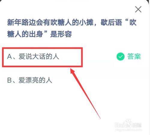 问题:新年路边会有吹糖人的小摊,歇后语“吹糖人的出身"是形容?