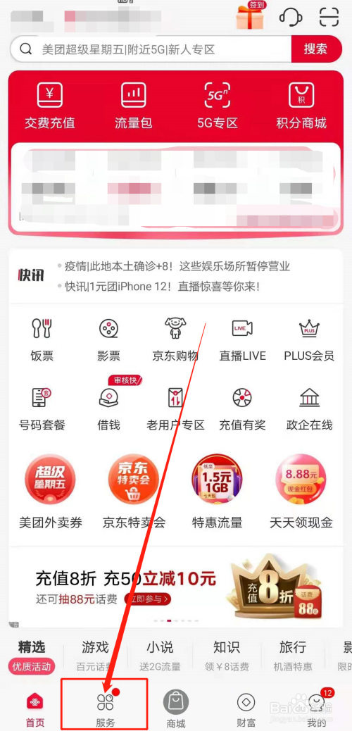 进入首页,点击下方【服务】;