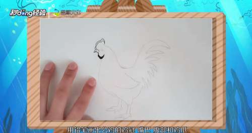 1用铅笔画出公鸡的鸡冠,嘴巴,腹部和鸡爪。
