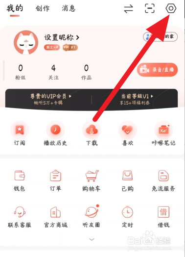 首先打开喜马拉雅右上角的设置图标。