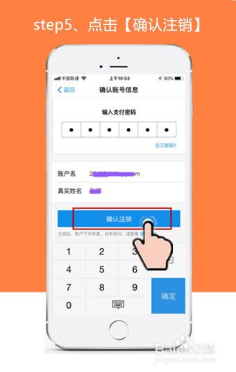 step5、为了确认是本人操作,需要正确输入账户支付密码,如果支付密码忘记是无法注销账户的,然后点击【确认注销】。