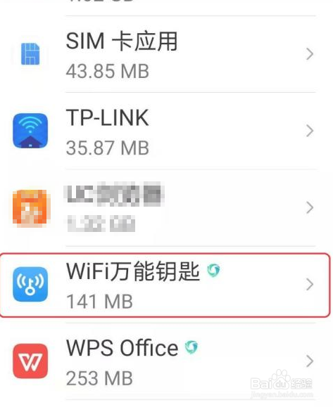 进入【应用管理】页面,找到【wifi万能钥匙】并点击。