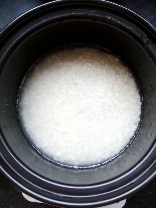 2大米洗干净,米和水放入砂锅里。米和水的比例大概是1:1.5。大米浸泡30分钟左右。