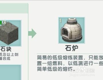 消耗8个岩石块、4个泥土块,制作【石炉】,制作要求:背包。