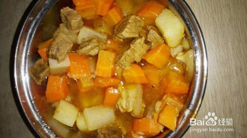 2个小时候加入准备好的土豆,胡萝卜,适量盐,在炖10分钟。