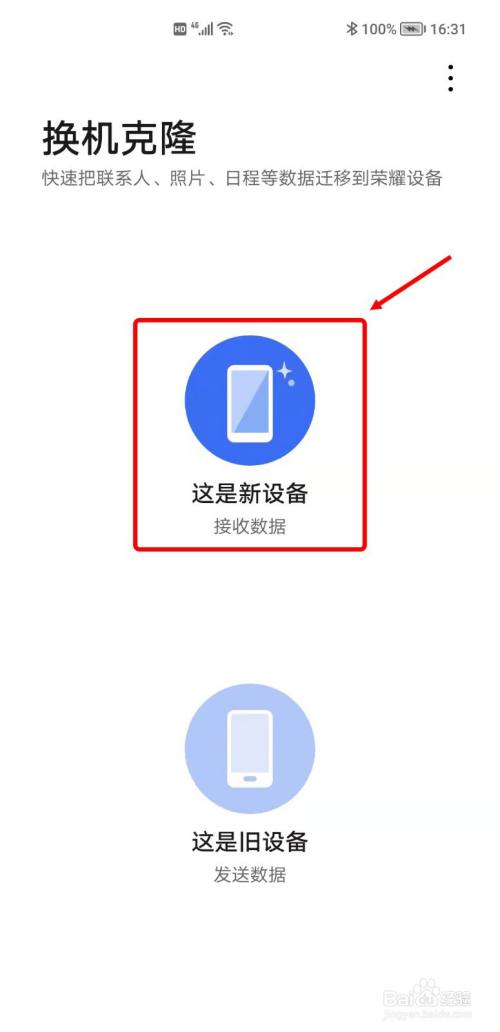 点击并进入荣耀手机(新手机)的【换机克隆】应用,选择【这是新设备】;