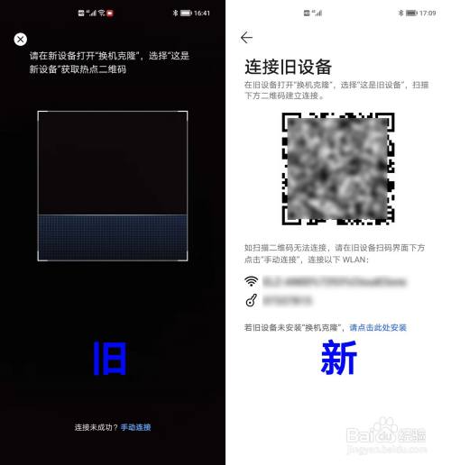 华为手机(旧手机)扫描荣耀手机(新手机)二维码,等待连接;