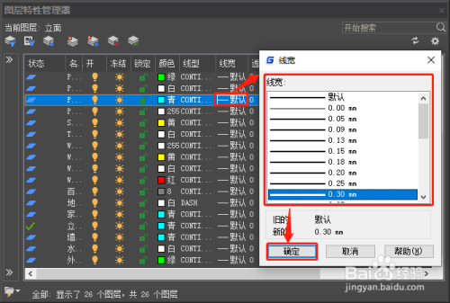 解决办法:在【图层特性管理器】中找到线条所在图层,将其线宽设置为合适线宽即可。