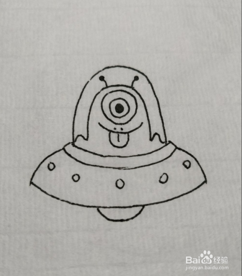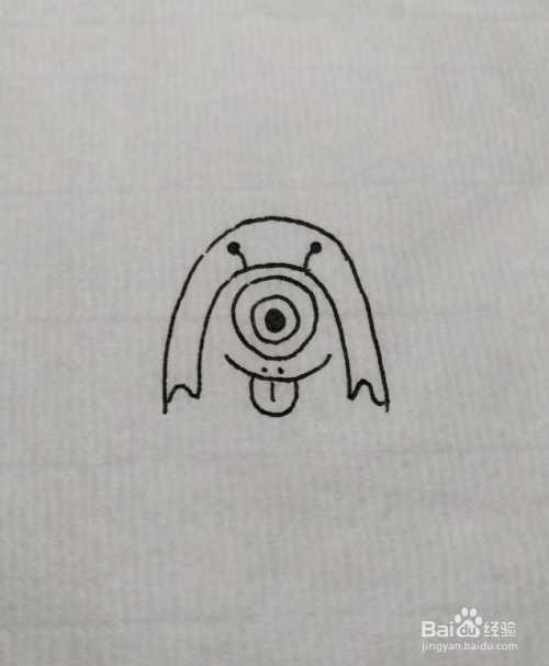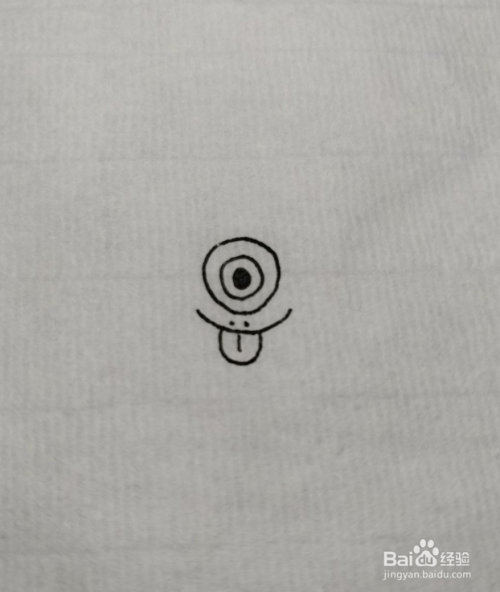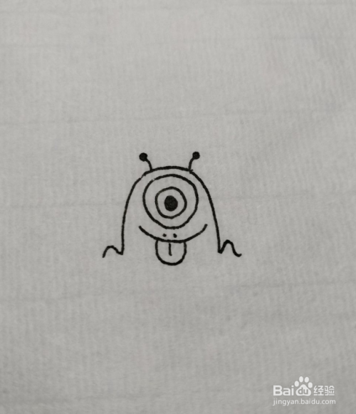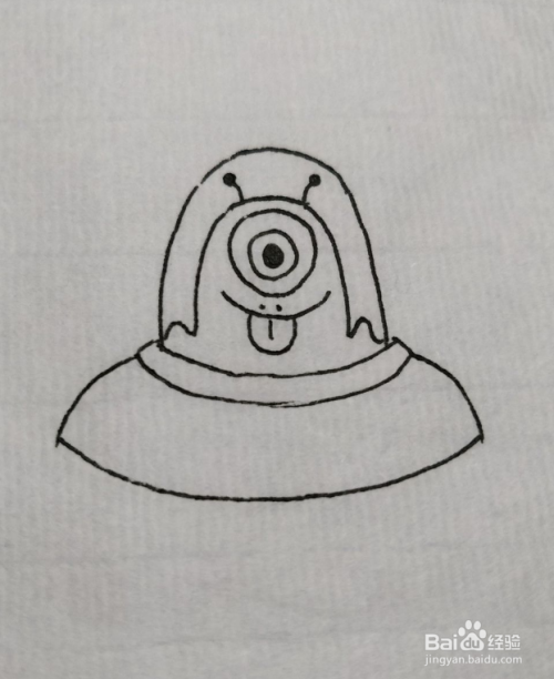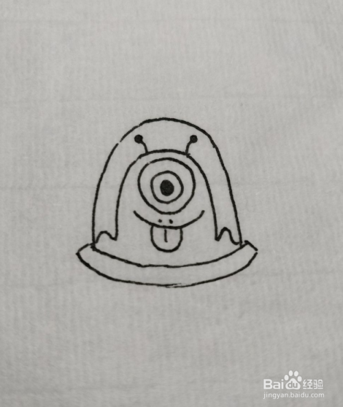 准备好我们需要的颜色之后,先在纸上画出一个大大的眼睛,这是外星人的眼睛。然后向下画出一个小舌头。