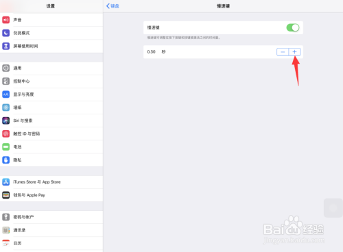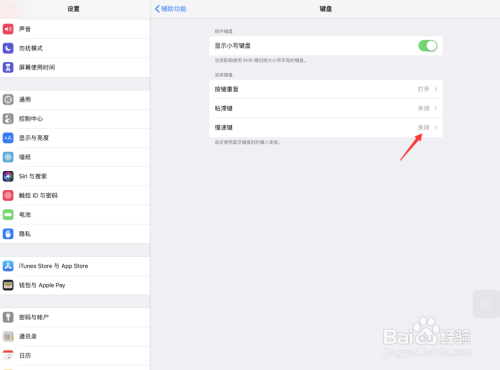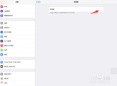 在iOS键盘设置页面中,点击打开慢速键