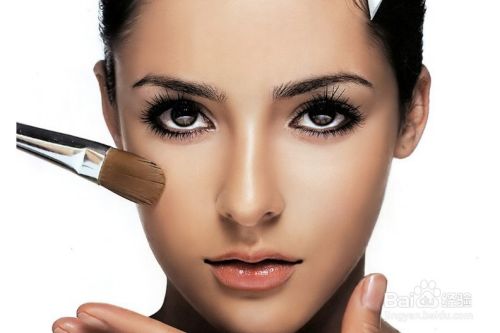粉底:先将适量粉底挤在左手背,然后用右手指将粉底点于额头、鼻梁、颧骨、下巴上。在额头和鼻梁上的粉底按自上而下方向涂抹,颧骨上的粉底向两颊方向抹开,下巴上的粉底自上而下抹至颈部。如果你觉得用手指涂抹粉底的效果不是太好,可以用一支细小的化妆扫,将粉底自内向外扫匀。