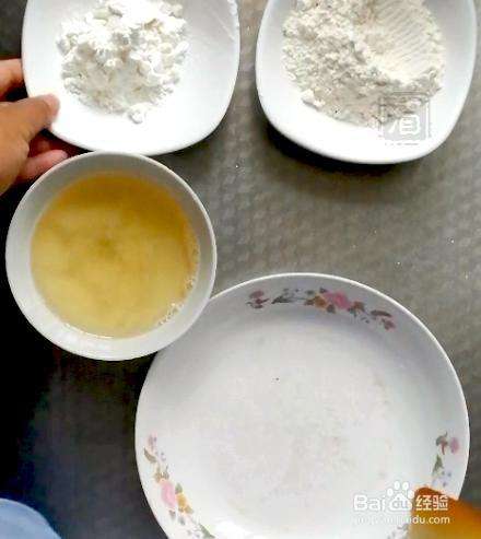 4、 锅中倒较多油,起码能淹没一条小鱼,加热到约160℃,腌好的小黄鱼放入面糊中滚一滚,使鱼身全部裹上面糊。