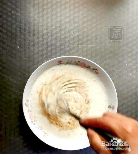 3我的面糊状态,能用手抽拉出纹路,但很快消失。碗中黄色的是白胡椒粉,一开始忘记放了,调好面糊后再加的。