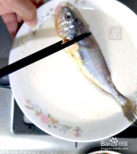 1小黄鱼处理干净,加料酒、盐、糖、葱段、姜片,腌制30分钟。