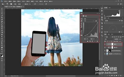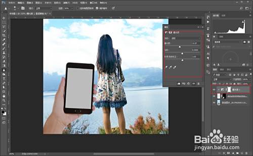 现在要给手机调色了,不然手部太亮了,看起来和背景图是两个世界的东西,首先降低曝光度