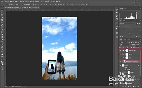 这个时候再复制背景图层,置于顶部,并且ctrl+j自由变换,缩放到合适的大小就行