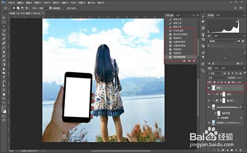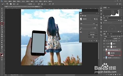 然后再右键创建剪贴蒙板,这个时候,手机屏幕里的图像就可以根据你的想法进行调整了