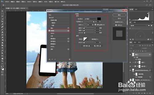 对手机屏幕的效果处理一下,双击顶部图层,添加图层样式内投影,让屏幕的边缘有点虚化的感觉